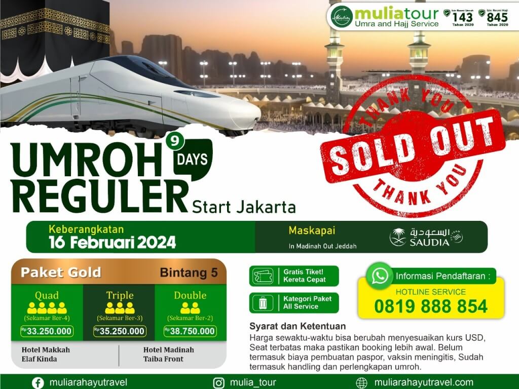 UMROH REGULER GOLD 9D, 16 FEBRUARI 2024, BY SAUDIA AIRLINES