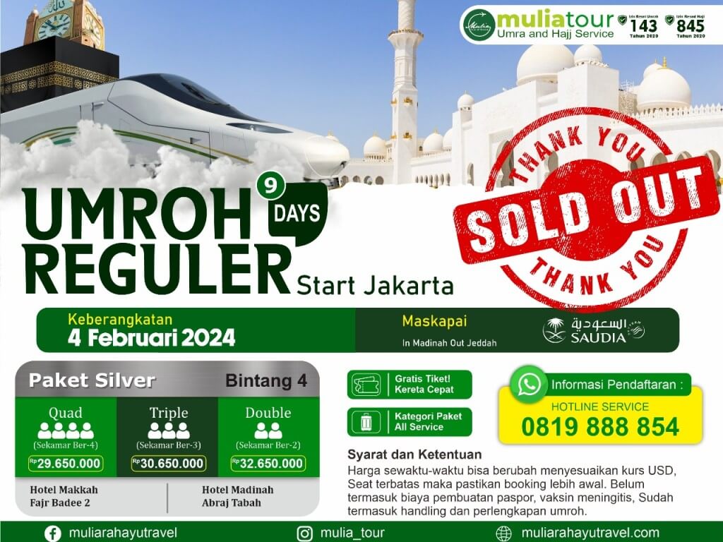 UMROH REGULER SILVER 9D, 04 FEBRUARI 2024, BY GARUDA INDONESIA