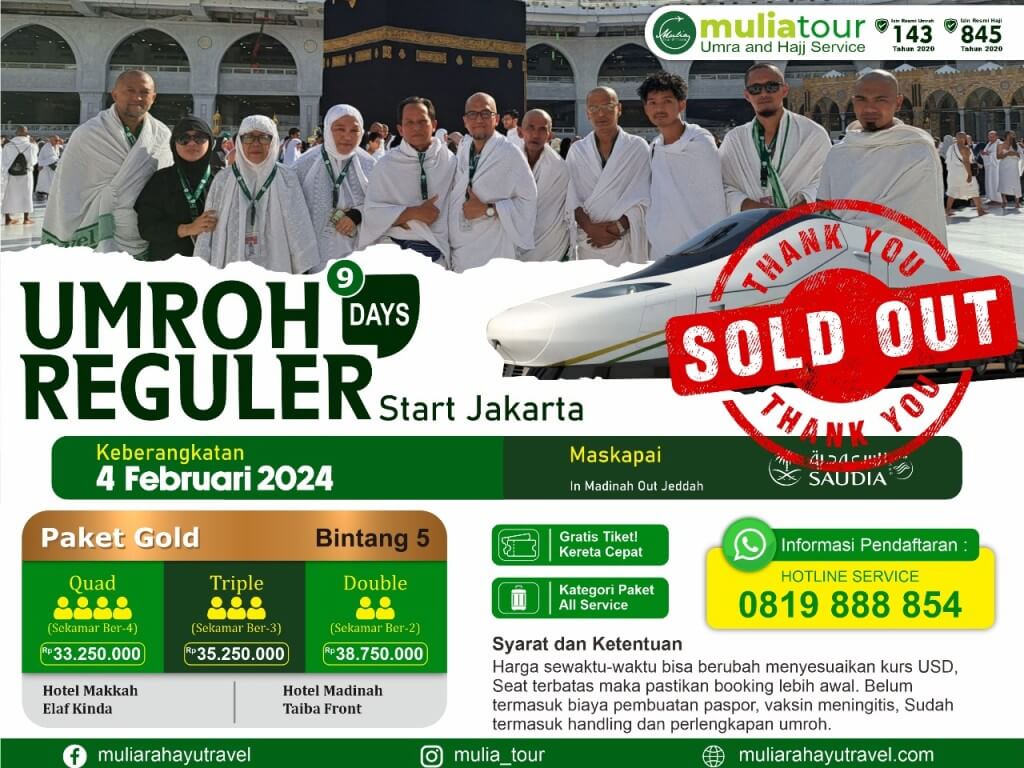 UMROH REGULER GOLD 9D, 04 FEBRUARI 2024, BY GARUDA INDONESIA