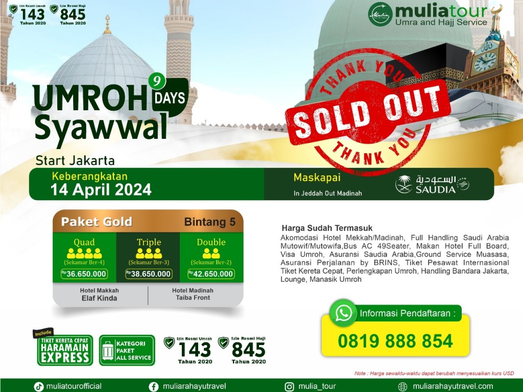 UMROH REGULER GOLD 9D, 14 APRIL 2024, BY SAUDIA AIRLINES
