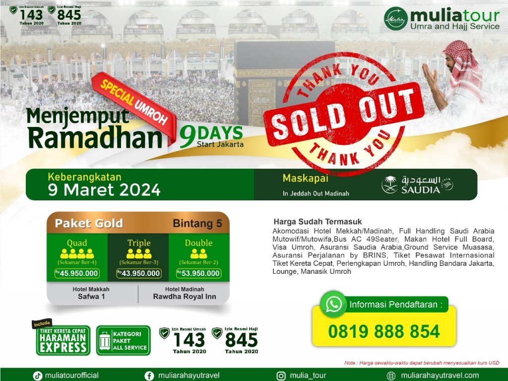 UMROH REGULER GOLD 9D, 09 MARET 2024, BY SAUDIA AIRLINES