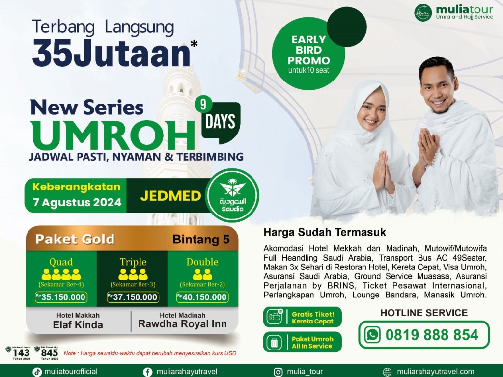 UMROH REGULAR GOLD 9D, 07 AGUSTUS 2024, BY SAUDIA AIRLINES