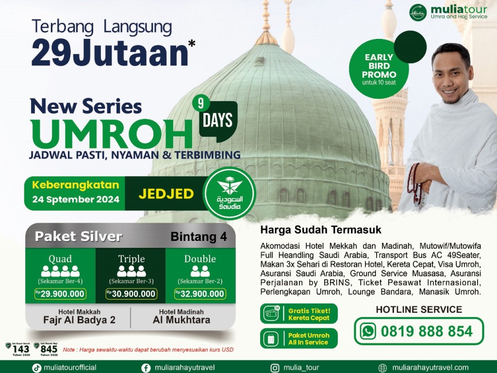 UMROH REGULAR SILVER 9D, 24 SEPTEMBER 2024, BY SAUDIA AIRLINES